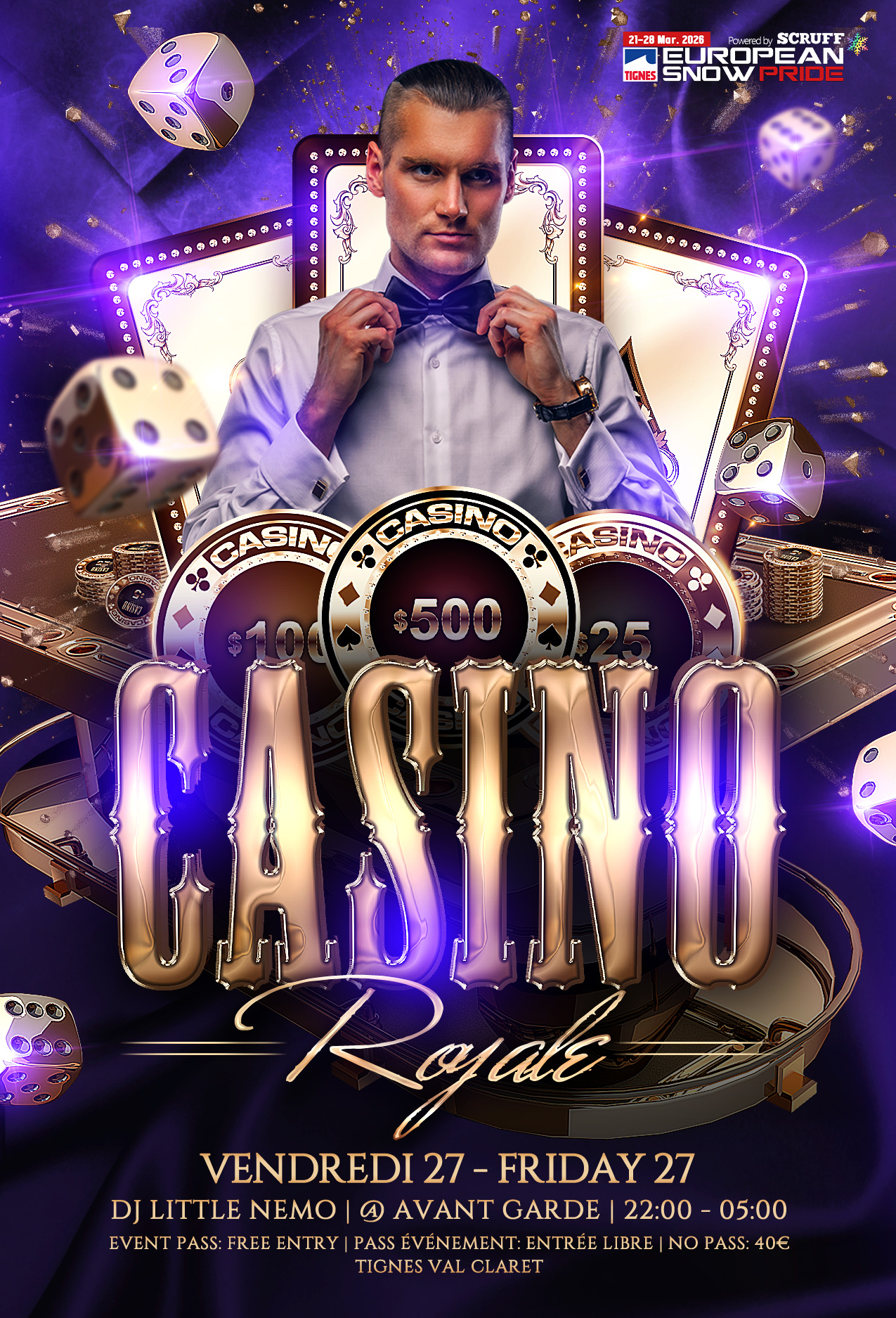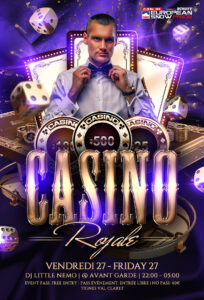 • Pass événement : entrée libre + 1 verre de bienvenue / 40€ sans CASINO ROYALE Closing Party