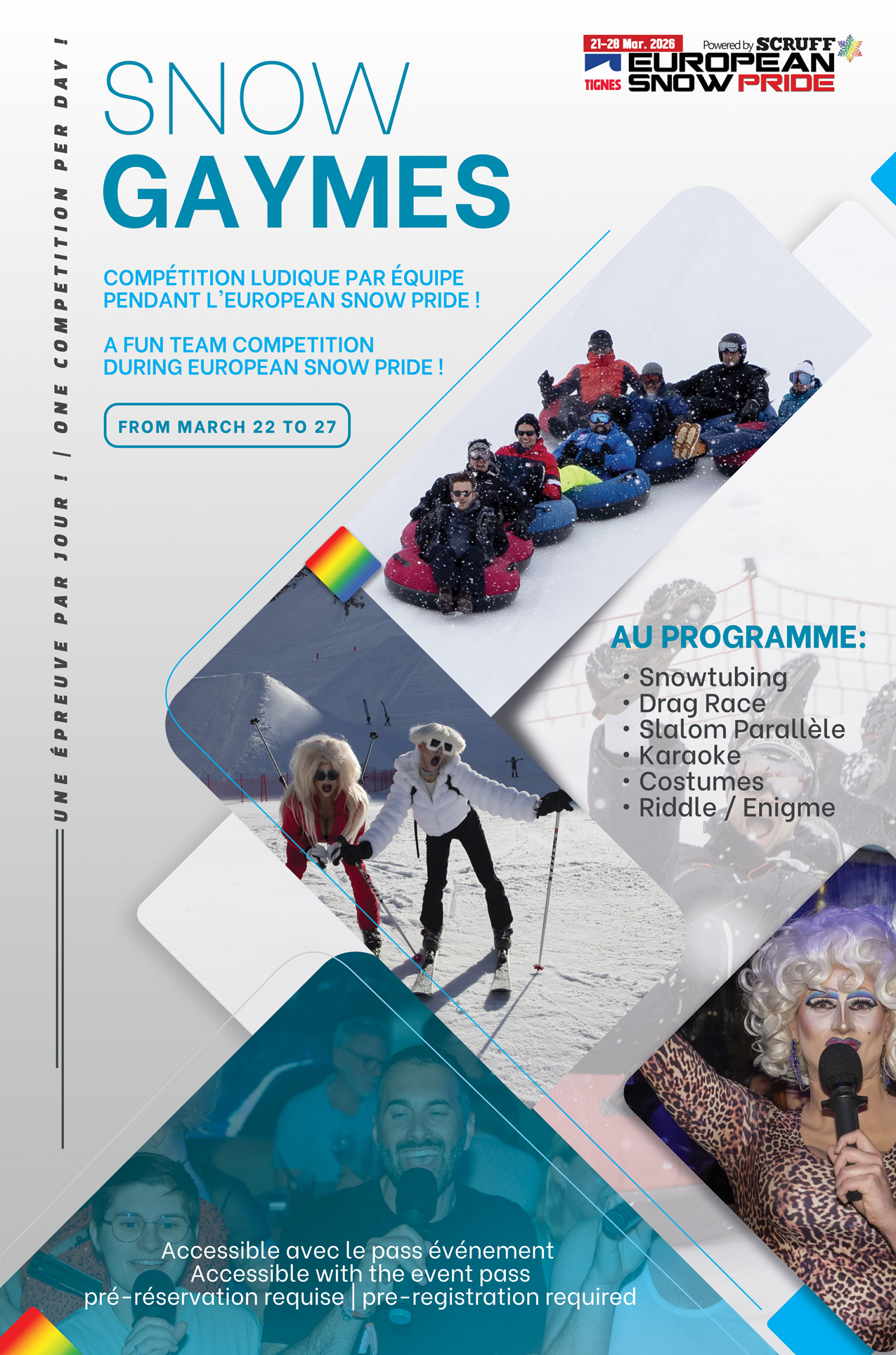 Les Snow Gaymes sont une compétition ludique par équipe se déroulant pendant la European Snow Pride